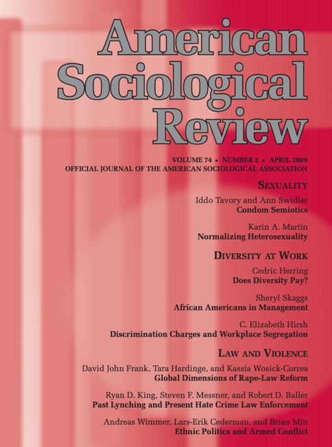 The American Sociological Review is the flagship journal of the American Sociological Association (ASA). The ASA founded this journal in 1936 with the mission to publish original works of interest to the sociology discipline in general, new theoretical developments, results of research that advance our understanding of fundamental social processes, and important methodological innovations. All areas of sociology are welcome in the American Sociological Review. Emphasis is on exceptional quality and general interest. The American Sociological Review does not publish book reviews.